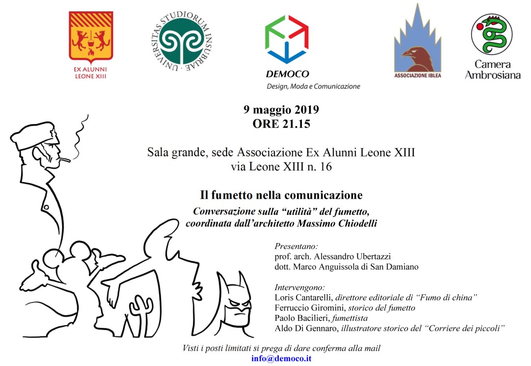 La serata organizzata in Associazione Ex Alunni, per Democo, dal Consigliere Sandro Ubertazzi (architetto, già professore alla Facoltá di Architettura Firenze) è stata davvero speciale perché ci ha mostrato in modo vivace e accattivante come il mondo delle “strisce disegnate”, con il testo nella nuvoletta, sia una vera e propria forma di letteratura.